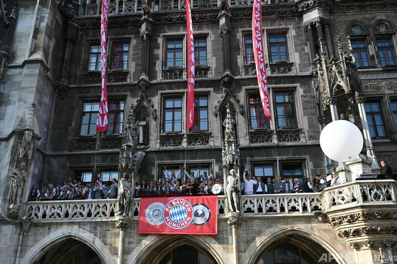 【5月29日 AFP】サッカードイツ・ブンデスリーガ1部のバイエルン・ミュンヘン(Bayern Munich)は28日、ミュンヘン(Munich)市内のマリエン広場(Marienplatz)で、男子と女子のチームがそろって祝勝会を行った。