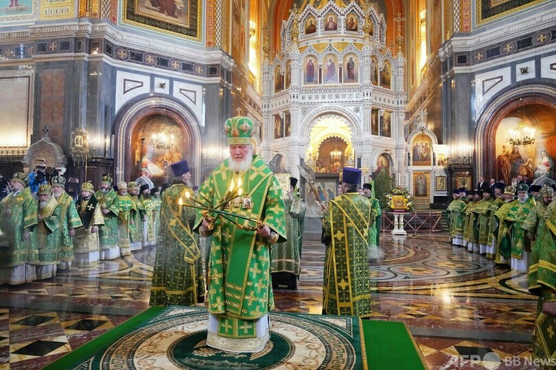 さらに、正教会として「祖国」と「正教会の大統領、ウラジミール・プーチン氏に祈りをささげた」とし、自身は「1年以上ウクライナで戦っているロシア兵のためにも祈っている」と述べた。(c)AFP