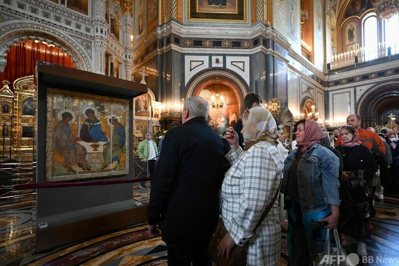 正教会に引き渡されたのは、ロシアの画家アンドレイ・ルブリョフ(Andrei Rublev)が600年近く前に描いた「至聖三者(Trinity)」。1929年から国立トレチャコフ美術館(Tretyakov Gallery)に保管されていた。文化財の専門家は、適切な管理が可能な美術館にとどめるべきだと反発していた。しかし、イコンは3日夜、大聖堂に移送された。