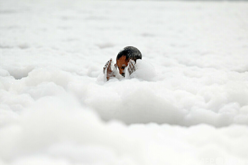 【6月5日 AFP】6月5日は世界環境デー(World Environment Day)。1972年に国連(UN)が定めた。インドの首都ニューデリーでは環境デーの前日、汚染により川面が泡で覆われたヤムナ(Yamuna)川をきれいにしようと人々が清掃活動に励んだ。