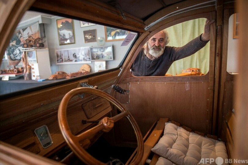 ロビヤールさんは、2CVに次いで、2025年にデビューから70年を迎えるシトロエン「DS」も同様に木材でつくりたいと話している。(c)AFP