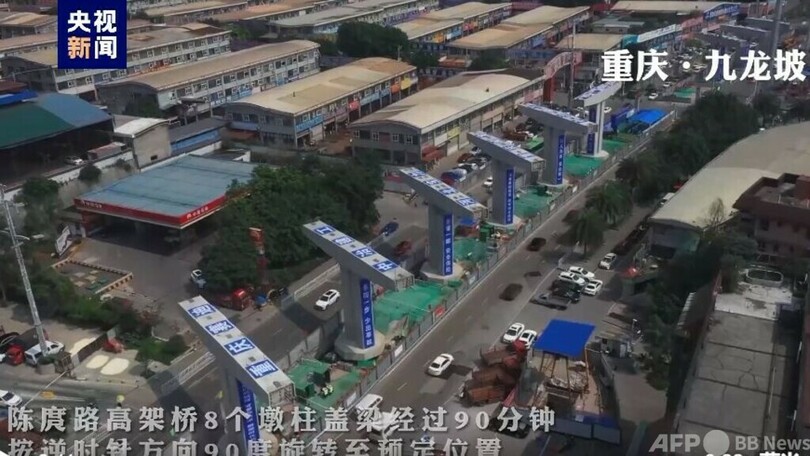 【6月11日 CGTN Japanese】中国南西部に位置する重慶市(Chongqing)でこのほど、陳庹路(ちんたくろ)高架橋の回転工事が実施されました。施工を担当した中冶建工集団は、市内の幹線道路が封鎖されていない状態で8基の橋脚とその上に掛かる枕梁(プレキャスト)の同時回転工事を実施し、順調に完了させました。このような工事が行われたのは中国で初めてだということです。