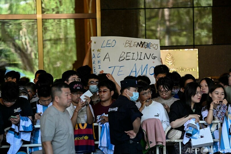 【6月10日 AFP】サッカーアルゼンチン代表のリオネル・メッシ(Lionel Messi)は10日、来週行われるオーストラリア代表との親善試合を前にプライベートジェットで中国・北京に到着し、数百人のファンから大歓迎を受けた。
