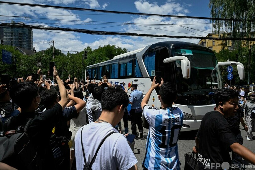 【6月10日 AFP】サッカーアルゼンチン代表のリオネル・メッシ(Lionel Messi)は10日、来週行われるオーストラリア代表との親善試合を前にプライベートジェットで中国・北京に到着し、数百人のファンから大歓迎を受けた。