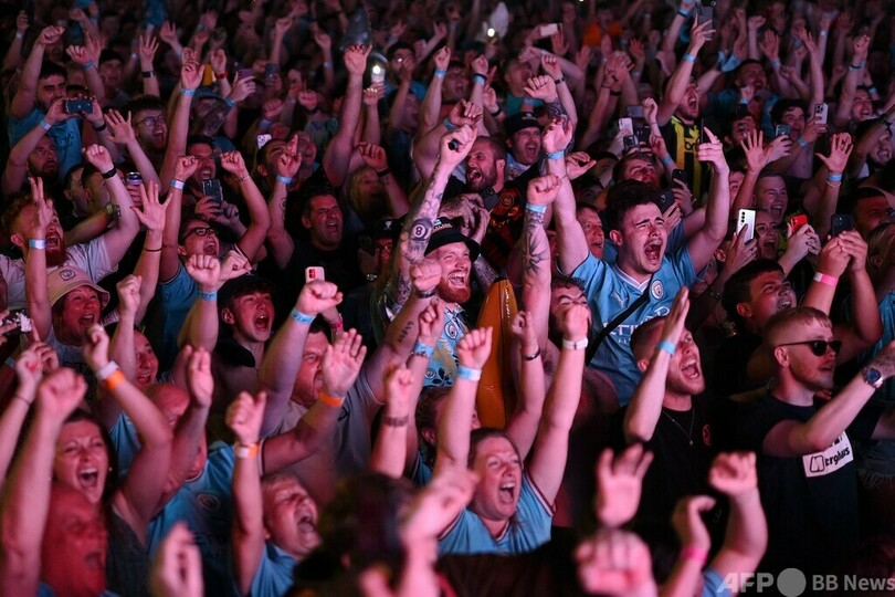 【6月11日 AFP】サッカー欧州チャンピオンズリーグ(UEFA Champions League 2022-23)決勝のマンチェスター・シティ(Manchester City)対インテル(Inter Milan)戦が行われた10日、英マンチェスターではパブリックビューイングが開催され、シティのサポーターはクラブ史上初の欧州制覇に沸いた。(c)AFP