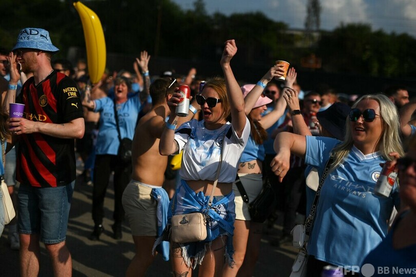 【6月11日 AFP】サッカー欧州チャンピオンズリーグ(UEFA Champions League 2022-23)決勝のマンチェスター・シティ(Manchester City)対インテル(Inter Milan)戦が行われた10日、英マンチェスターではパブリックビューイングが開催され、シティのサポーターはクラブ史上初の欧州制覇に沸いた。(c)AFP