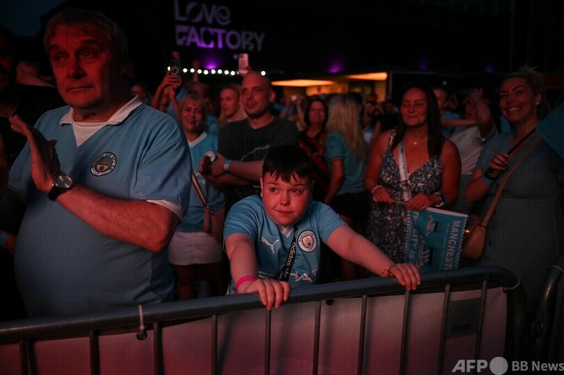 【6月11日 AFP】サッカー欧州チャンピオンズリーグ(UEFA Champions League 2022-23)決勝のマンチェスター・シティ(Manchester City)対インテル(Inter Milan)戦が行われた10日、英マンチェスターではパブリックビューイングが開催され、シティのサポーターはクラブ史上初の欧州制覇に沸いた。(c)AFP