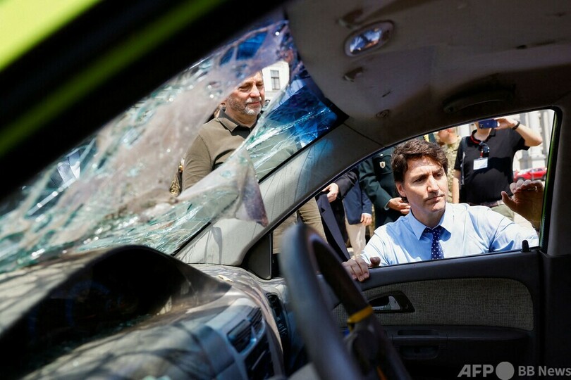 一方、ロシアの侵攻開始以来2回目のキーウ訪問となったトルドー氏は、南部ヘルソン(Kherson)州のダムが攻撃により決壊したことについて、調査が継続中であることは承知しているとした上で、「ロシアによる侵攻がなければダムは無事だったはずだ」とし、ロシア側を非難した。(c)AFP