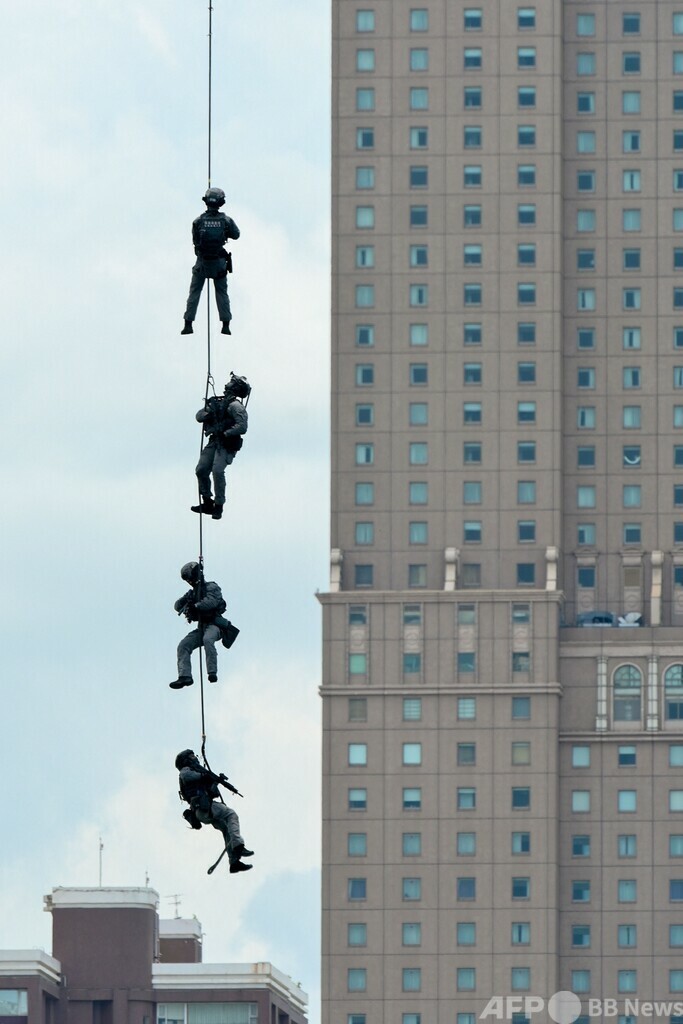 【6月11日 AFP】台湾南部の港湾都市・高雄(Kaohsiung)市で10日、人質事件を想定した大規模な沿岸訓練が行われた。沿岸警備隊、軍、警察、空中勤務総隊(National Airborne Service Corps)が参加した。