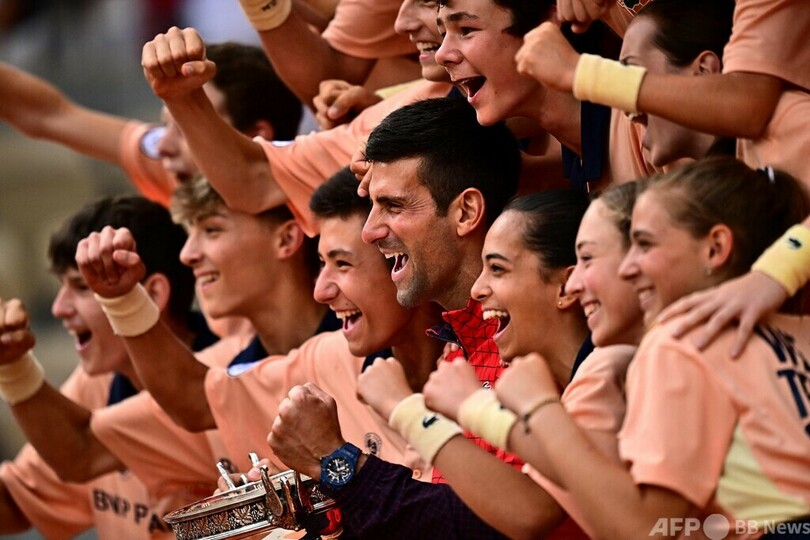 ジョコビッチはこの日、キャスパー・ルード(Casper Ruud、ノルウェー)を7-6(7-1)、6-3、7-5で下して3度目の全仏オープン制覇を果たし、グランドスラムの優勝回数で並んでいたラファエル・ナダル(Rafael Nadal、スペイン)を抜き単独最多となった。(c)AFP