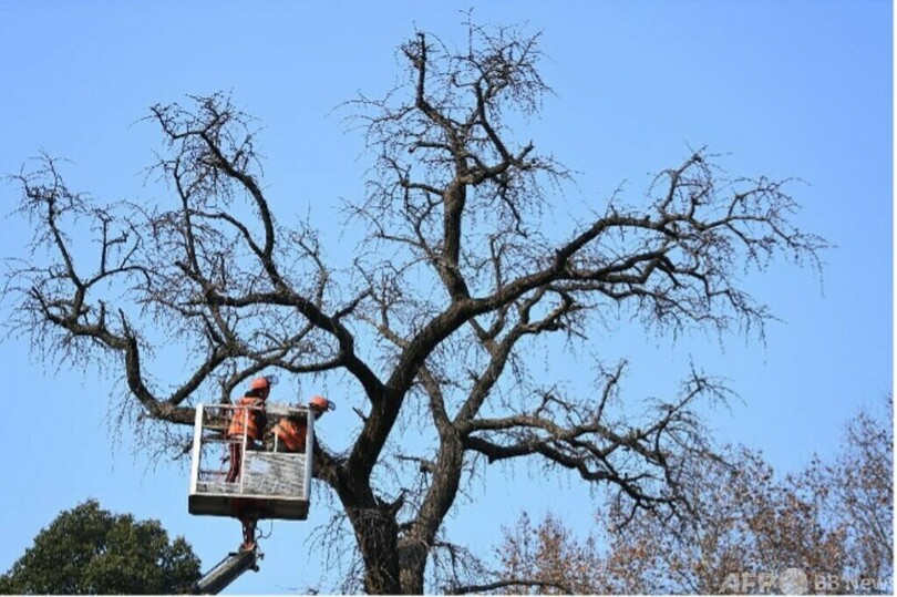 2017年4月には「都市古樹名木の養生・回復工程技術規範」が導入された。同規範は「古樹名木には養生を主とし、回復は養生に基づいて行う。養生には水分補給と排水、施肥、有害生物駆除、樹冠整備、地上環境整備、樹体予防保護などを用いる。状態が悪く危機的状況で、安全上の問題がある古樹名木には土壌改良、樹体損傷処理、樹洞補修、樹体補強などの技術を用いて回復させる」などと対策を明確に定めている。(c)Peopleʼs Daily /AFPBB News