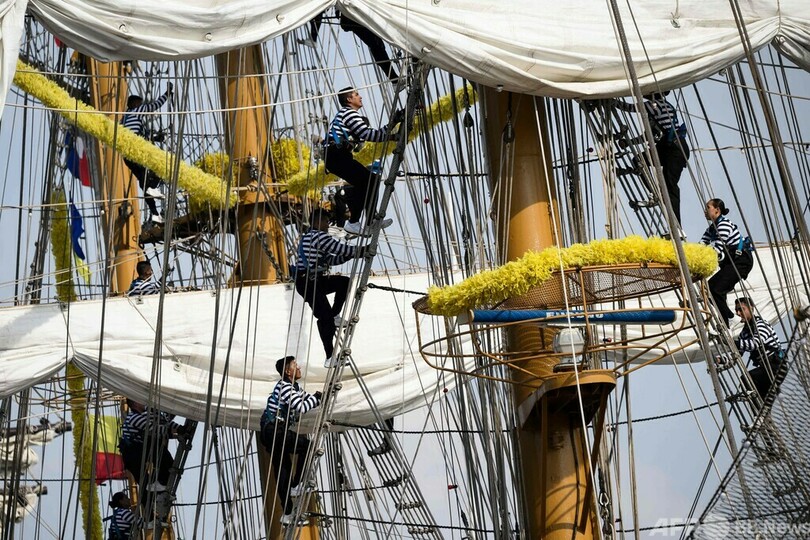 【6月23日 AFP】フランス北西部ルーアン(Rouen)で開催された大型帆船が集結する催し「アルマダ祭2023(Armada 2023)」で、セーヌ(Seine)川に架かるフローベール橋(Flaubert Bridge)を通過するクアウテモク(Cuauhthemoc)号。(c)AFP