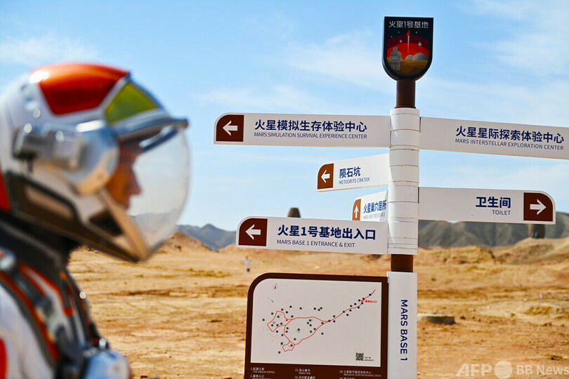 火星1号基地は、中国宇宙飛行士科学研究訓練センターと中国宇宙科学技術国際交流センターの指導により誕生。ゴビ砂漠が火星の地形に特徴が似ていることから、火星での生存シミュレーションをする基地として中国で初めて建設された。宇宙飛行士らは火星の過酷な環境を疑似体験し、将来の任務に備えている。(c)CNS/JCM/AFPBB News
