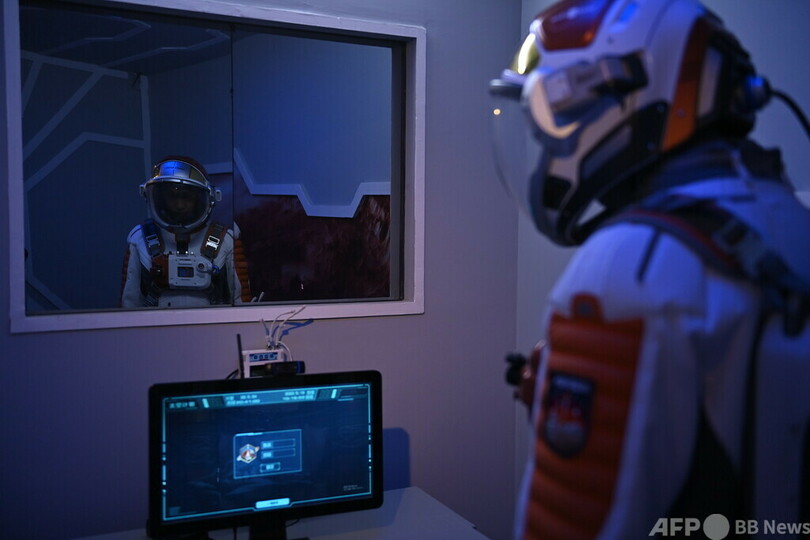火星1号基地は、中国宇宙飛行士科学研究訓練センターと中国宇宙科学技術国際交流センターの指導により誕生。ゴビ砂漠が火星の地形に特徴が似ていることから、火星での生存シミュレーションをする基地として中国で初めて建設された。宇宙飛行士らは火星の過酷な環境を疑似体験し、将来の任務に備えている。(c)CNS/JCM/AFPBB News