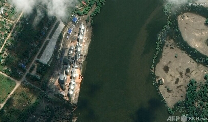 【6月17日 AFP】ウクライナ南部ヘルソン(Kherson)州のロシア支配地域にあるカホウカ(Kakhovka)水力発電所のダムおよびコザツケ(Kozatske)穀物貯蔵施設。昨年5月の破壊される前のダムの様子と、今月6日に攻撃を受けて破壊され、洪水が発生した翌日の様子、さらに水が引いた後の16日の衛星画像を宇宙技術会社マクサー・テクノロジーズ(Maxar Technologies)が公開した。