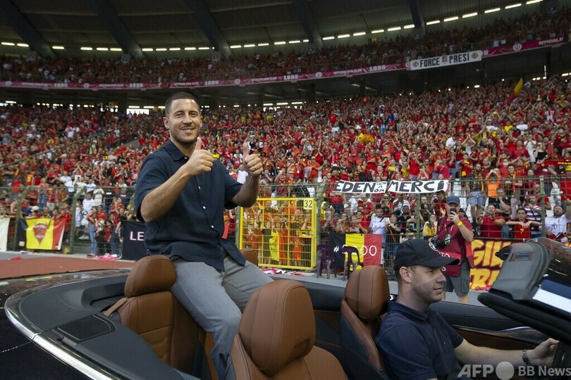 ハーフタイムには、W杯カタール大会(2022 World Cup)限りで代表から引退した元主将のエデン・アザール(Eden Hazard)が登場し、スタジアムを1周した。(c)AFP