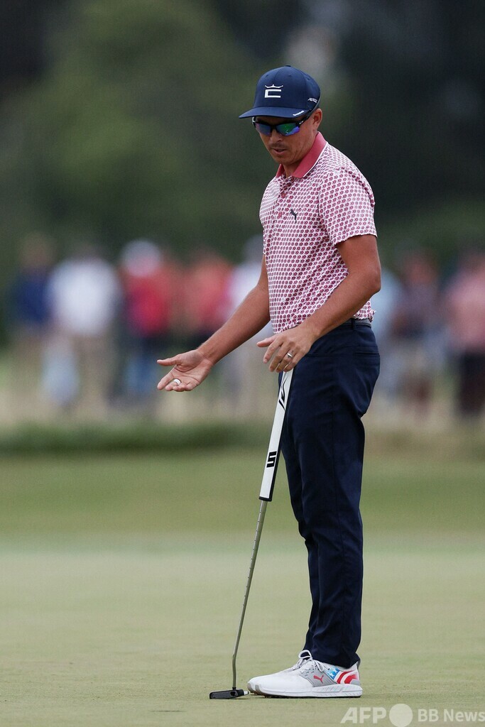 メジャー2勝のダスティン・ジョンソン(Dustin Johnson、米国)と東京五輪金メダリストのザンダー・シャウフェレ(Xander Schauffele、米国)が5打差6位タイで続き、地区予選を勝ち上がって出場した永野竜太郎(Ryutaro Nagano)が「68」を記録し、6打差8位に食い込んでいる。(c)AFP/Rebecca BRYAN