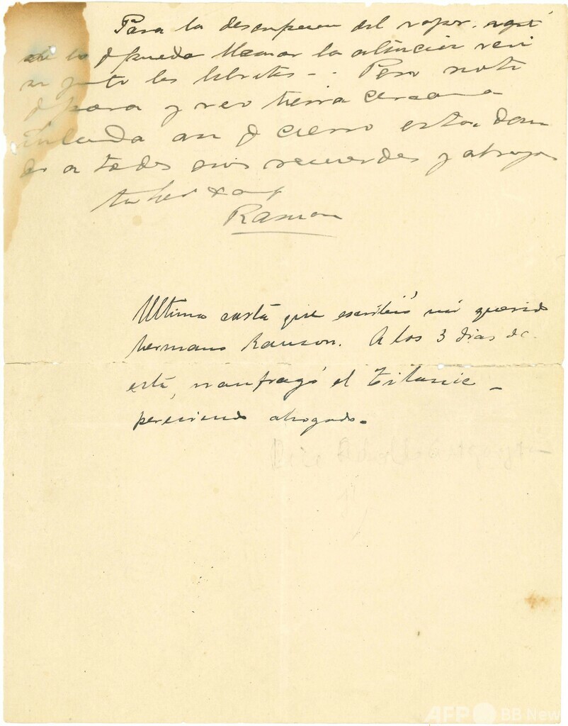 手紙には、アドルフォさんが記した「親愛なる私の兄弟ラモンが書いた最後の手紙」との手書きのメモも残されている。