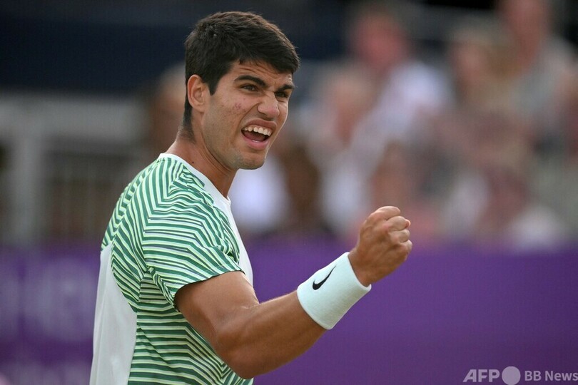 【6月24日 AFP】男子テニス、シンチ選手権(2023 cinch Championships)は23日、シングルス準々決勝が行われ、大会第1シードのカルロス・アルカラス(Carlos Alcaraz、スペイン)は元大会覇者のグリゴール・ディミトロフ(Grigor Dimitrov、ブルガリア)を6-4、6-4でねじ伏せ、グラス(芝)コート初制覇に向けて歩みを進めた。