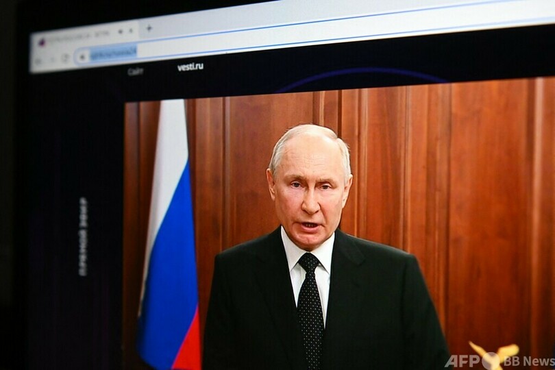 【6月24日 AFP】ロシアのウラジーミル・プーチン(Vladimir Putin)大統領は24日、国民に向けて演説し、同国の民間軍事会社ワグネル(Wagner)の武装反乱は「反逆」であり、創設者エフゲニー・プリゴジン(Yevgeny Prigozhin)氏はロシアを「裏切った」として、反逆者は全員処罰すると明言した。