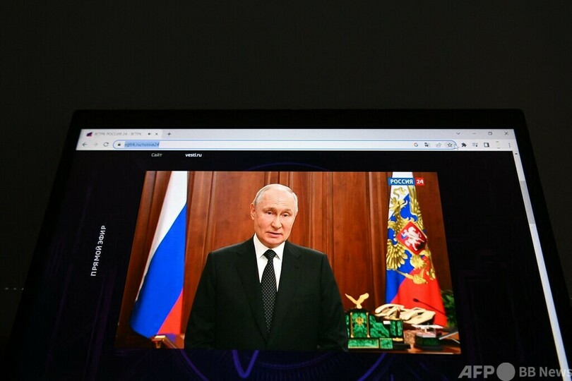 【6月24日 AFP】ロシアのウラジーミル・プーチン(Vladimir Putin)大統領は24日、国民に向けて演説し、同国の民間軍事会社ワグネル(Wagner)の武装反乱は「反逆」であり、創設者エフゲニー・プリゴジン(Yevgeny Prigozhin)氏はロシアを「裏切った」として、反逆者は全員処罰すると明言した。