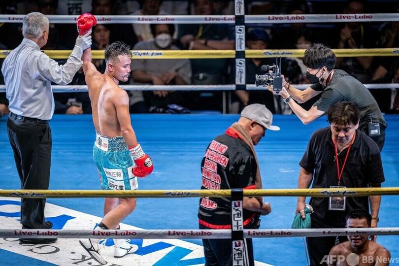 同日に行われたバンタム級ノンタイトル10回戦では、比嘉大吾(Daigo Higa)がシリチャイ・タイイェン(Sirichai Thaiyen、タイ)を4回KOで下した。(c)AFP