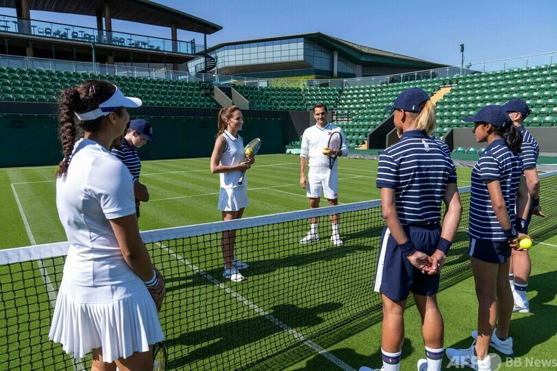 【6月25日 AFP】元男子テニスのロジャー・フェデラー(Roger Federer)氏と英国のキャサリン皇太子妃(Catherine, Princess of Wales)は24日、ウィンブルドン選手権(The Championships Wimbledon 2023)の会場で、大会開幕を控えて行われたボールキッズの練習に参加した。(c)AFP