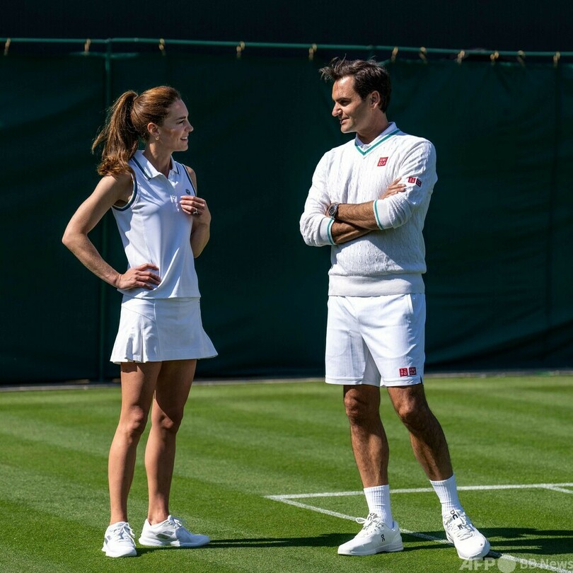 【6月25日 AFP】元男子テニスのロジャー・フェデラー(Roger Federer)氏と英国のキャサリン皇太子妃(Catherine, Princess of Wales)は24日、ウィンブルドン選手権(The Championships Wimbledon 2023)の会場で、大会開幕を控えて行われたボールキッズの練習に参加した。(c)AFP