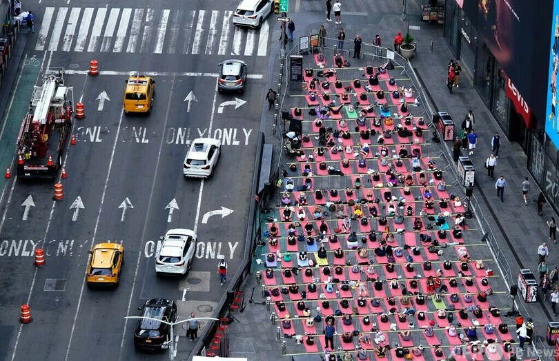 【今日の1枚】急がば回れ、NY中心部でヨガ 米