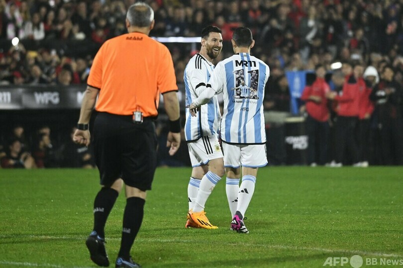 【6月26日 AFP】サッカー元アルゼンチン代表のマキシ・ロドリゲス(Maxi Rodriguez)の引退試合が24日、同国ロサリオのマルセロ・ビエルサ・スタジアム(Estadio Marcelo Bielsa)で行われ、代表でともにプレーしたリオネル・メッシ(Lionel Messi)らが登場した。(c)AFP