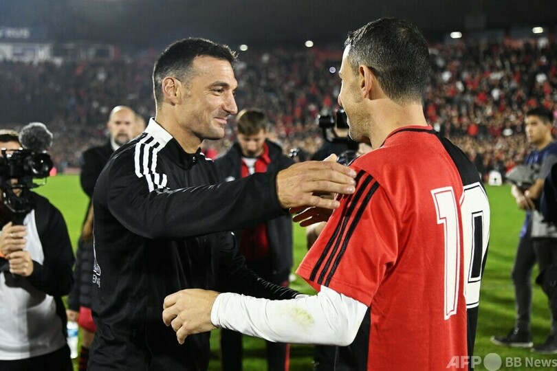 【6月26日 AFP】サッカー元アルゼンチン代表のマキシ・ロドリゲス(Maxi Rodriguez)の引退試合が24日、同国ロサリオのマルセロ・ビエルサ・スタジアム(Estadio Marcelo Bielsa)で行われ、代表でともにプレーしたリオネル・メッシ(Lionel Messi)らが登場した。(c)AFP
