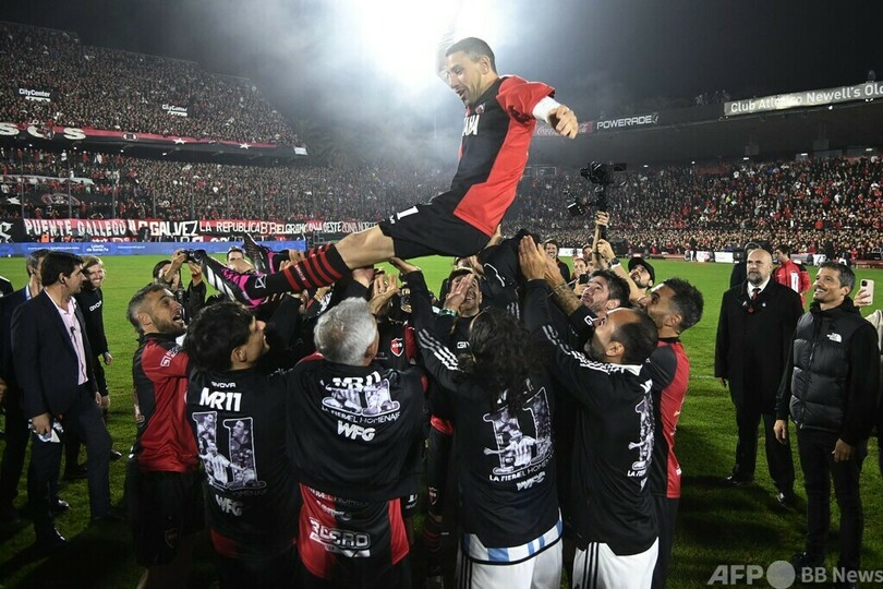 【6月26日 AFP】サッカー元アルゼンチン代表のマキシ・ロドリゲス(Maxi Rodriguez)の引退試合が24日、同国ロサリオのマルセロ・ビエルサ・スタジアム(Estadio Marcelo Bielsa)で行われ、代表でともにプレーしたリオネル・メッシ(Lionel Messi)らが登場した。(c)AFP