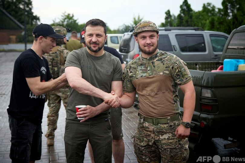 【6月27日 AFP】ウクライナのウォロディミル・ゼレンスキー(Volodymyr Zelensky)大統領は26日、東部ドネツク(Donetsk)州の前線を訪れた。