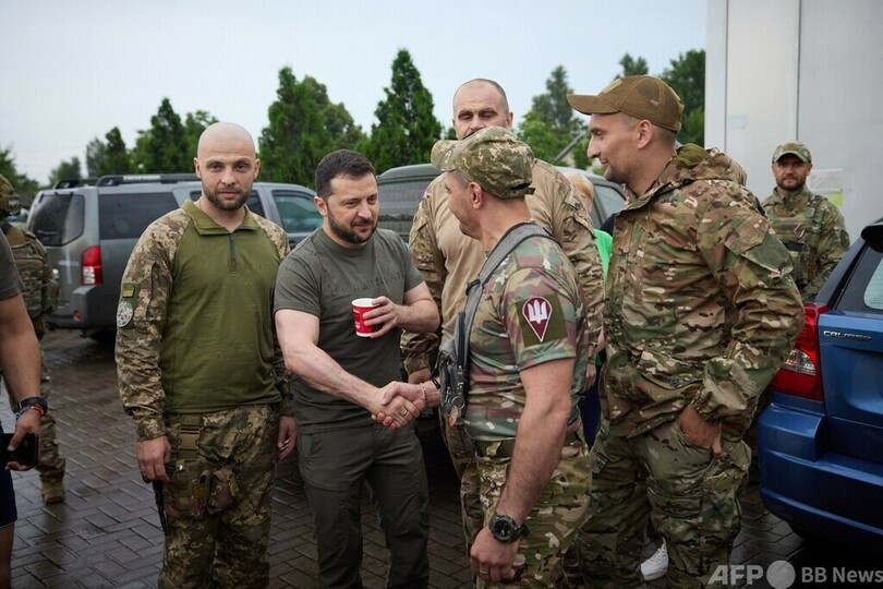 【6月27日 AFP】ウクライナのウォロディミル・ゼレンスキー(Volodymyr Zelensky)大統領は26日、東部ドネツク(Donetsk)州の前線を訪れた。