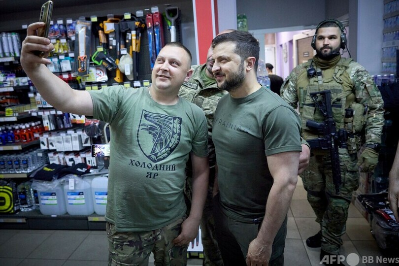 大統領府によると、ゼレンスキー氏は激戦地バフムート(Bakhmut)周辺で戦う部隊を訪問。地域統合部隊の司令官から報告を受けたほか、兵士にメダルを授与した。