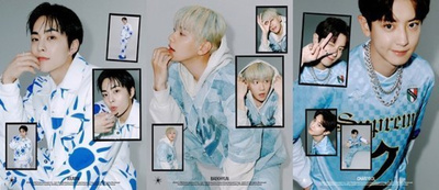 イメージは、おぼろげな背景に調和したフレンドリーな姿のシウミン、ベクヒョン、チャンヨルを捉えている。