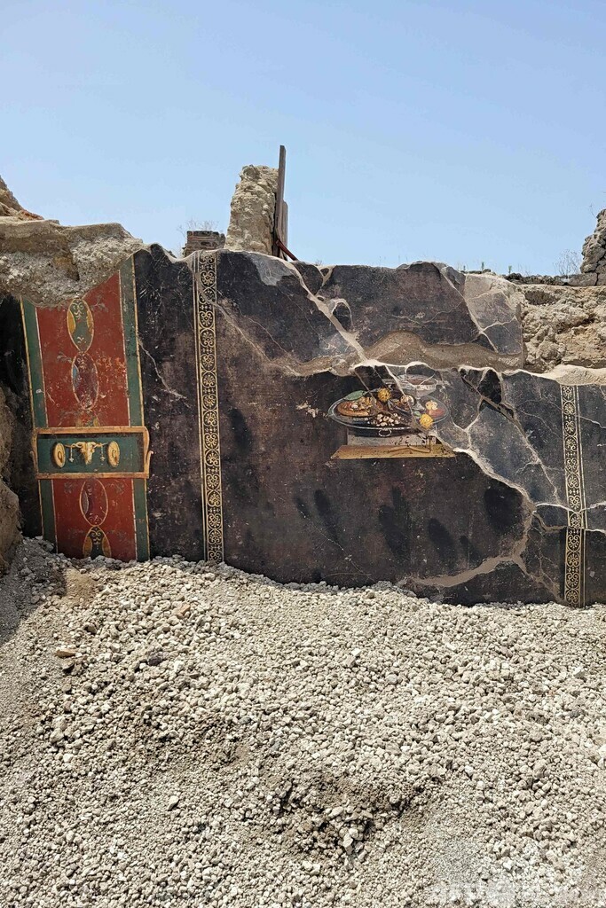 今回見つかったフレスコ画は、紀元前3〜紀元前1世紀ごろに古代ギリシャで行われ、古代ローマにも広まった客人への「もてなし」を描いたものとみられる。(c)AFP