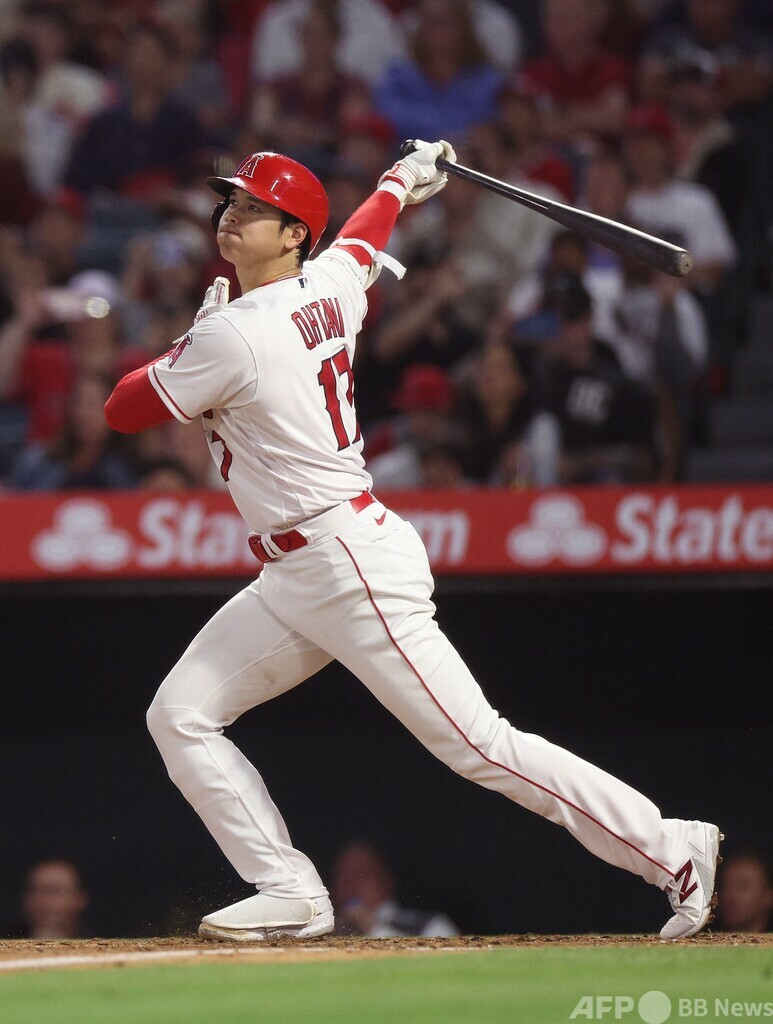 大谷は初回に先制の27号ソロ本塁打を放つと、7回にはリードを3-1に広げる28号ソロ本塁打を逆方向に運んだ。この日は単打も放ち、3打数3安打2打点1四球だった。エンゼルスは4-2で勝利した。(c)AFPBB News