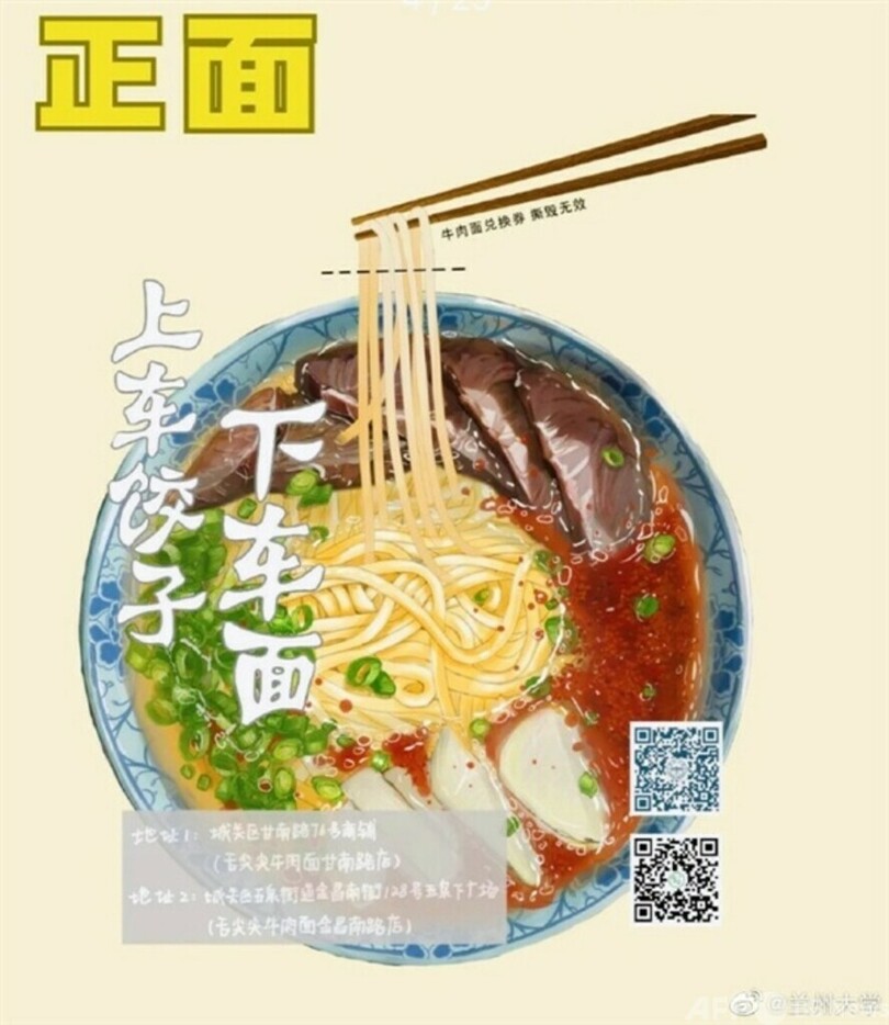 蘭州大学は26日、2023年の合格通知書のデザインを発表しました。赤色の学部生合格通知書と青色の院生合格通知書の2つのバージョンを用意したほか、実際に「食べる」ことができるサプライズもつけ加えました。中国では人を送別する時にギョーザ、出迎える時に麺を食べさせる習慣があります。今年の蘭州大学の新入生は、8月20日から10月7日までの間、合格通知書に付いている無料引換券に印刷されたラーメン店で本場の蘭州牛肉麺を食べることができます。これは新入生限定のラーメンプレゼントです。
