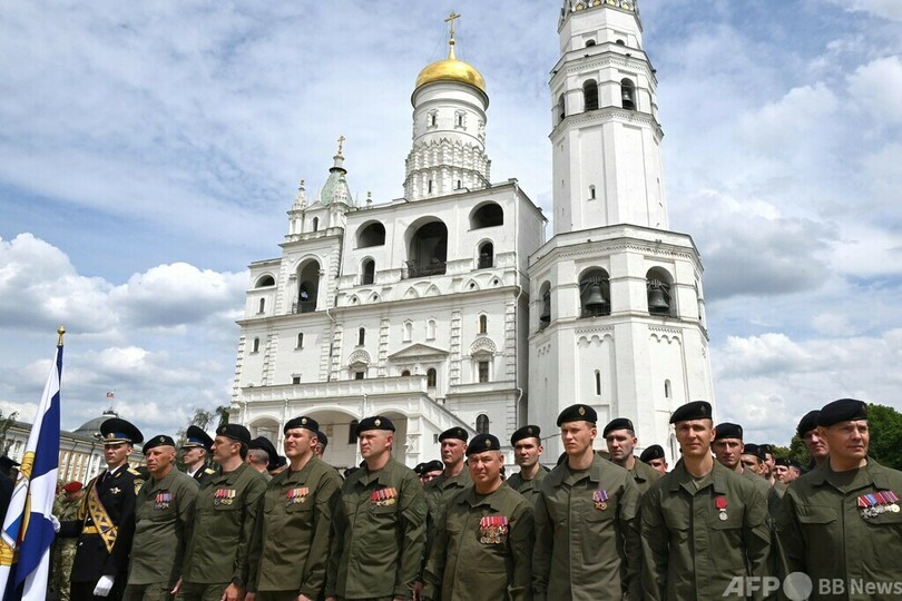 プーチン氏は27日に大統領府で開かれた式典で、ワグネルの反乱を防いだと軍を称賛した。しかし、この式典はネットで嘲笑の的になっている。