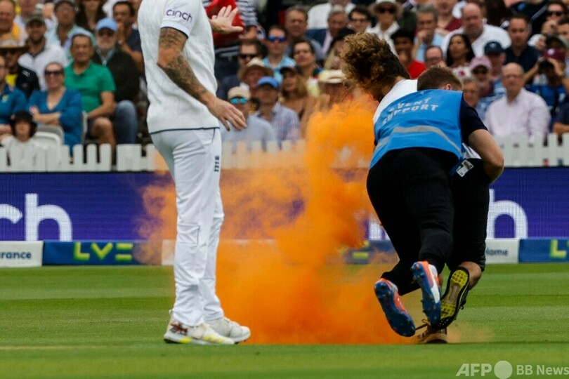 【6月29日 AFP】28日に英ロンドンで行われたクリケットのイングランド対オーストラリア戦で、環境団体「ジャスト・ストップ・オイル(Just Stop Oil)」の活動家2人がピッチに侵入し、試合が一時中断した。うち1人はイングランドのジョニー・ベアストウ(Jonny Bairstow)に捕まり、フィールドの外に運び出された。