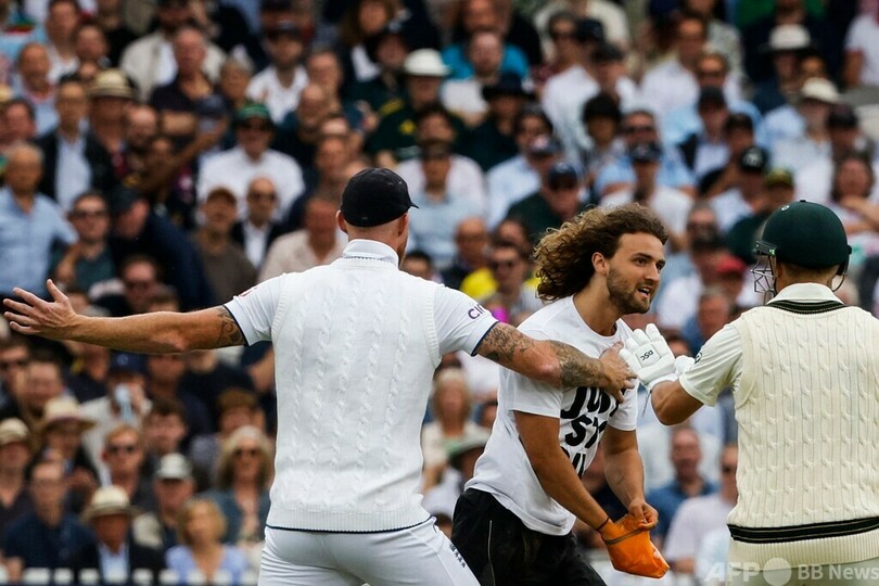 【6月29日 AFP】28日に英ロンドンで行われたクリケットのイングランド対オーストラリア戦で、環境団体「ジャスト・ストップ・オイル(Just Stop Oil)」の活動家2人がピッチに侵入し、試合が一時中断した。うち1人はイングランドのジョニー・ベアストウ(Jonny Bairstow)に捕まり、フィールドの外に運び出された。