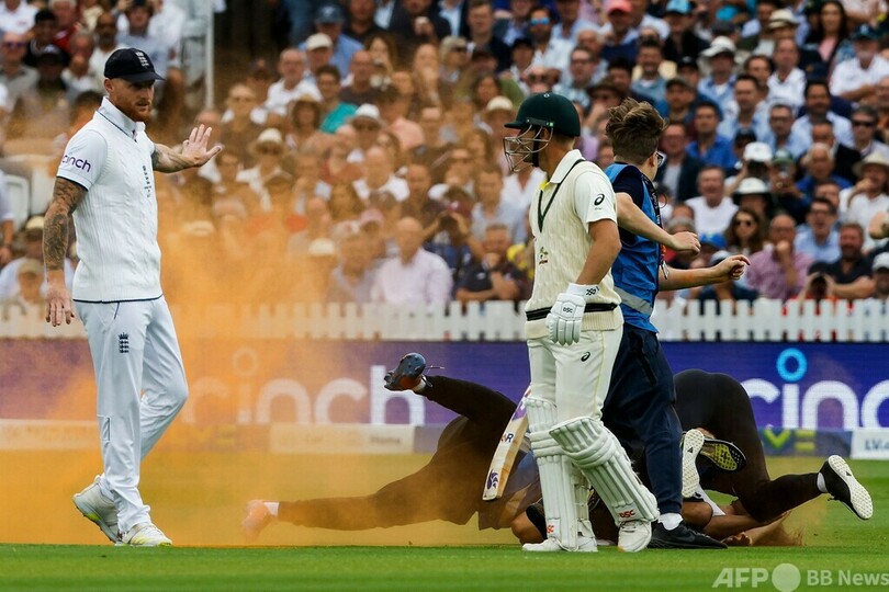 【6月29日 AFP】28日に英ロンドンで行われたクリケットのイングランド対オーストラリア戦で、環境団体「ジャスト・ストップ・オイル(Just Stop Oil)」の活動家2人がピッチに侵入し、試合が一時中断した。うち1人はイングランドのジョニー・ベアストウ(Jonny Bairstow)に捕まり、フィールドの外に運び出された。