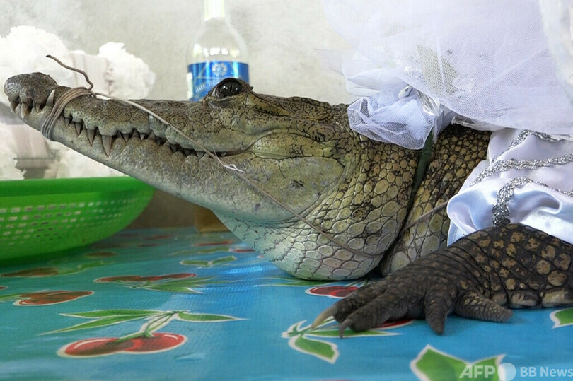 【7月2日 AFP】メキシコ南部の町サンペドロウアメルラ(San Pedro Huamelula)で、町長とワニの聖なる「結婚式」が行われた。地元住民に幸運をもたらす伝統行事だという。