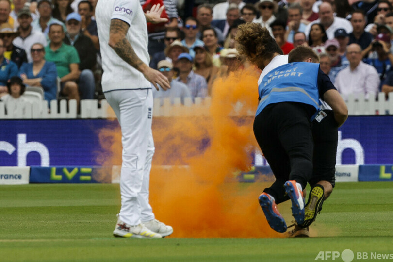 前週、英ロンドンで行われたクリケットのイングランド対オーストラリア戦では、「ジャスト・ストップ・オイル(Just Stop Oil)」の活動家3人がフィールドに侵入してオレンジ色の粉をグラウンドにまき散らした。最近ではラグビーのイングランド・プレミアシップ・プレーオフ決勝や、サッカーのイングランド・プレミアリーグでも同様のデモ行為が行われていた。