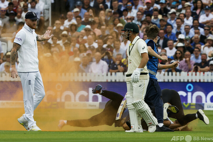 前週、英ロンドンで行われたクリケットのイングランド対オーストラリア戦では、「ジャスト・ストップ・オイル(Just Stop Oil)」の活動家3人がフィールドに侵入してオレンジ色の粉をグラウンドにまき散らした。最近ではラグビーのイングランド・プレミアシップ・プレーオフ決勝や、サッカーのイングランド・プレミアリーグでも同様のデモ行為が行われていた。