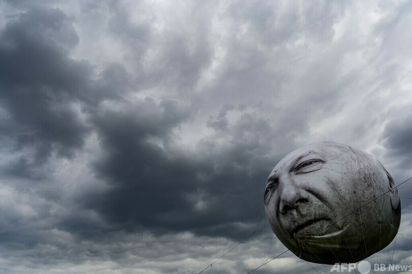 巨大風船に首相の顔 持続可能な開発目標の実現要求 独