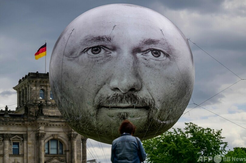 ドイツ連邦議会(下院)の議場が置かれている国会議事堂の前では、オラフ・ショルツ(Olaf Scholz)首相やクリスティアン・リントナー(Christian Lindner)財務相の顔が描かれた巨大な風船が浮かべられた。(c)AFP