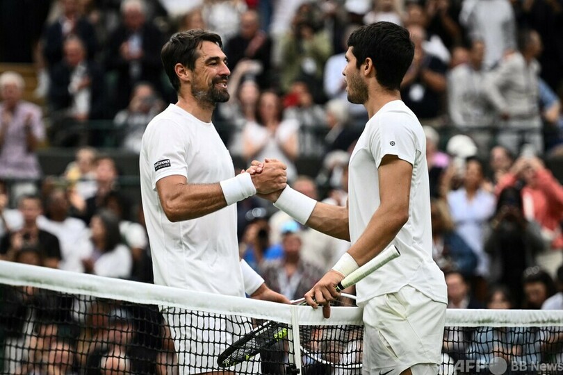 【7月5日 AFP】テニス、ウィンブルドン選手権(The Championships Wimbledon 2023)は4日、男子シングルス1回戦が行われ、世界ランク1位で大会第1シードのカルロス・アルカラス(Carlos Alcaraz、スペイン)は6-0、6-2、7-5でジェレミー・シャーディ(Jeremy Chardy、フランス)を下し、初優勝へ向けて好発進を切った。