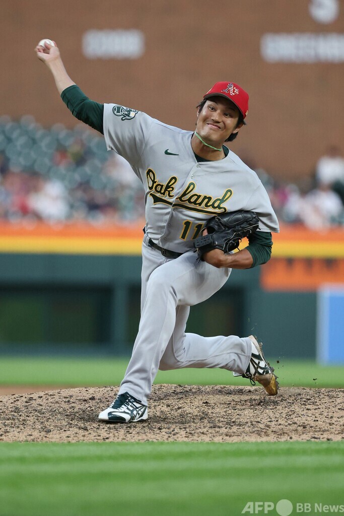 【7月5日 AFPBB News】米大リーグ(MLB)は4日、各地で試合が行われ、オークランド・アスレチックス(Oakland Athletics)の藤浪晋太郎(Shintaro Fujinami)はデトロイト・タイガース(Detroit Tigers)戦の9回に3番手で登板し、3者連続三振で1回を無安打無失点に抑え、5勝目(7敗)を挙げた。アスレチックスは1-0で勝利した。
